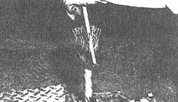 ¿ëÇØµÈ ±Ý¼Ó ¿Âµµ¸¦ ÃøÁ¤ÇÑ´Ù. ÇÕ±ÝÀº 370 ~ 390¡Æc ¾Æ¿¬Àº 490 ~ 510¡Æc·Î À¯ÁöÇϰí Ç¥¸é¿¡ »êȹ°À» Á¦°ÅÇÑ´Ù. |
